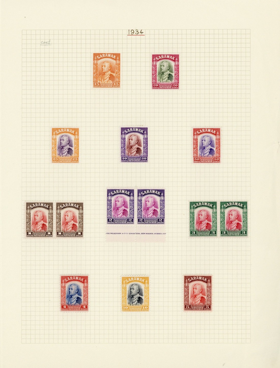 — 1c. to $10 set of twenty-six, the 2c. green and 12c. orange in imprint strips of four, 2c. black and 15c blue in strips of three and the 3c. green, 6c. (both), 8c. carmine, 10c., $1, $2 and $3 in pairs (the $2 marginal with part imprint), fine mint. S.G. 106-125, £460+