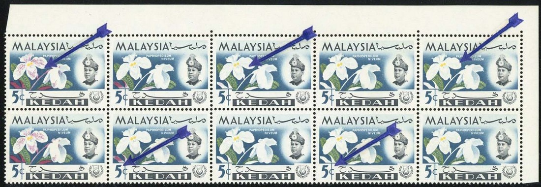 — 5c., a top right corner block of ten (5x2), the 3rd to 5th rows with red omitted and the 2nd row with red virtually omitted, fine unmounted mint. S.G. 117c, £780