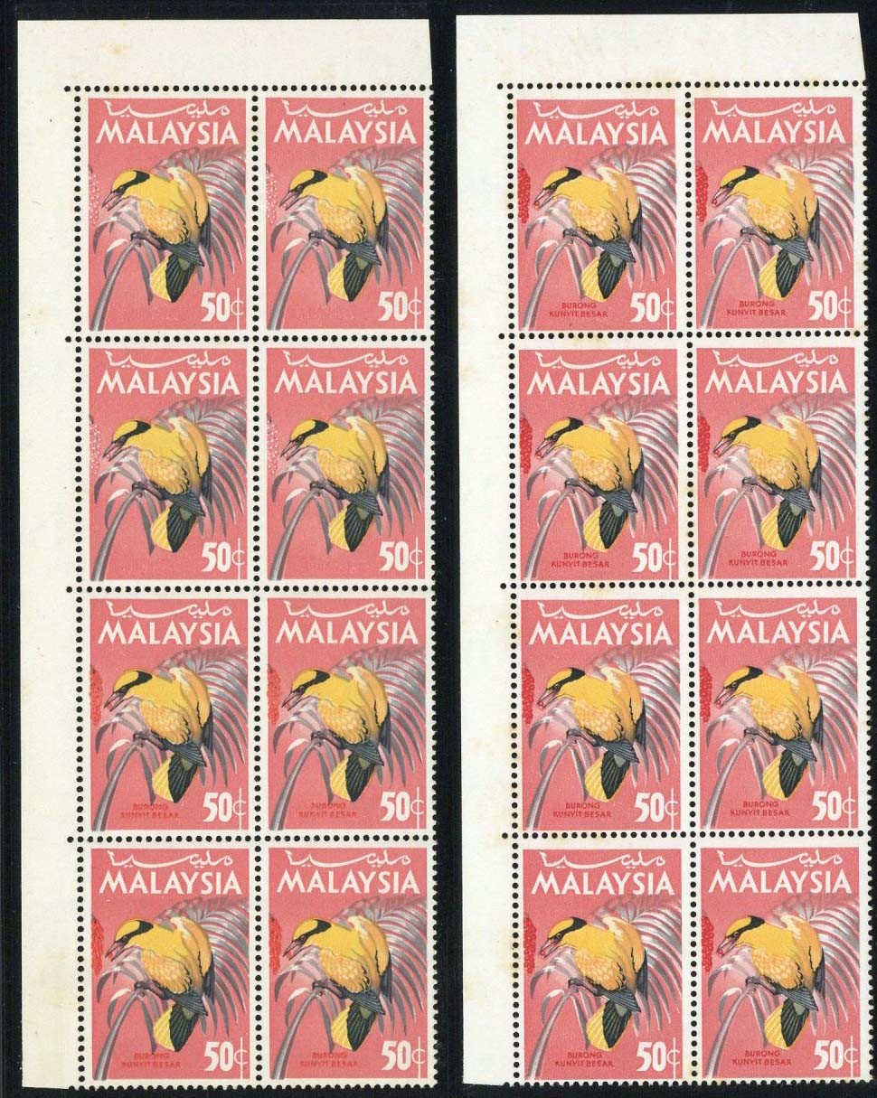 — 50c. top left corner block of eight (2x4), the top block of four with scarlet (inscription and berries) omitted, unmounted mint; the odd minor tone spot on gum, mainly in the selvedge. S.G. 22c, £480+