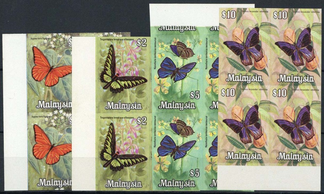 — $1, $2, $5 and $10, each in a marginal imperforate block of four, fine unmounted mint. S.G. 68-71vars; ISC 67b-69b, 70a