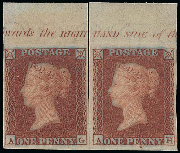 Plate 128 AG, AH 'pair'; in a deep, rich red-brown, with top margin showing part inscription, other margins large to very large, blued paper showing the ivory head. Fresh and fine. Photo