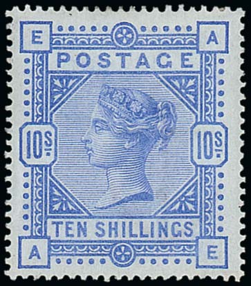 10/- ultramarine, AE, part to large part original gum; part hinge remainder and small internal gum wrinkle. Fresh colour. B.P.A. Certificate (2007). S.G. 183, £2250. Photo