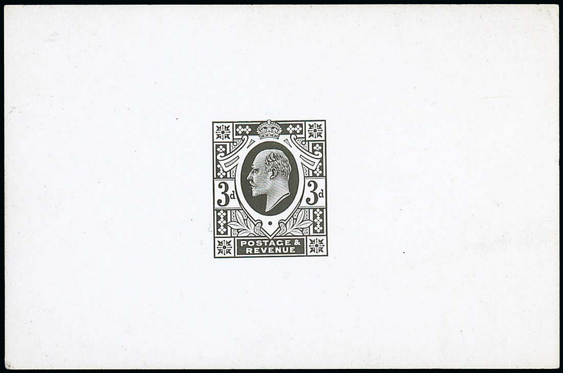 3d. die proof in black on glazed card (92x60mm) without markings; hinge remainders on the reverse, very fresh and fine. Cat. £2800. Photo