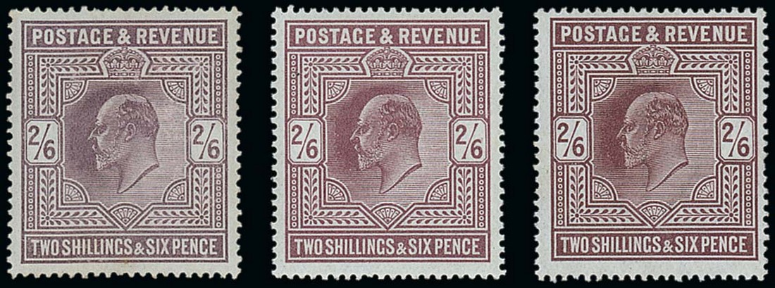 2/6d. shades with dull purple, dull reddish purple and pale dull reddish purple, part to large part original gum; a couple of gum wrinkles. (3). Photo