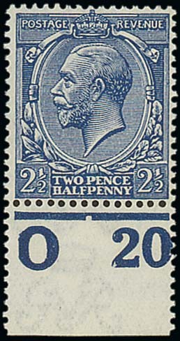 2½d. Royal blue, lower margin control "O 20" single, unmounted mint; light gum bends. Showing the half dot in margin of plate 9b. Copy of R.P.S. Certificate (1974) for a strip of three. S.G. N21 (16), £425. Photo