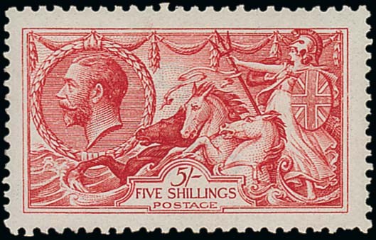 5/- rose-carmine, large part original gum; good centring, fair perfs. and a couple of minor gum wrinkles. Fresh. S.G. 401, £625. Photo