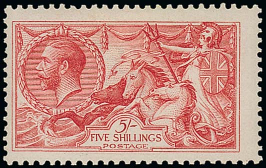 5/- pale rose-carmine, large part original gum; centred left, very good perfs. Fresh and fine. S.G. N66 (2), £600. Photo