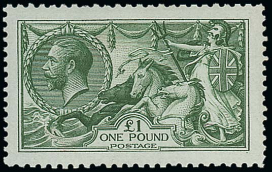 £1 green, large part original gum; small hinge remnant, well centred and fresh. Rich colours. S.G. 403, £3500. Photo
