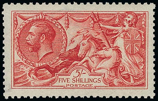5/- carmine, large part original gum; reasonable centring and good perfs, a couple of gum bends. Fresh colour. Photo