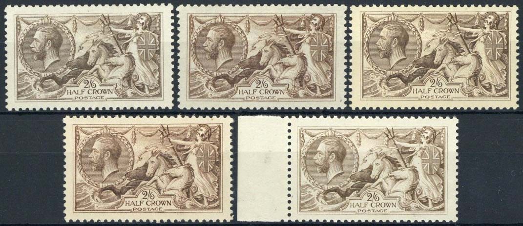 2/6d. in a group of five different shades, large part original gum to mint; generally well centred and good to very fine. (5)