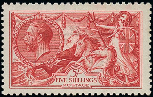5/- rose-carmine, lightly mounted mint; well centred and good perforations. A fine and appealing stamp with rich colour. Photo