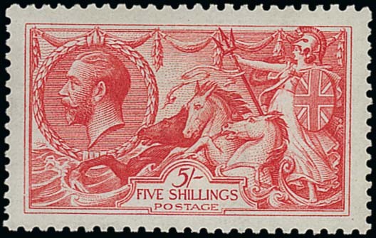 5/- rose-carmine, lightly mounted mint; very well centred and good perforations. Fresh and attractive. Photo