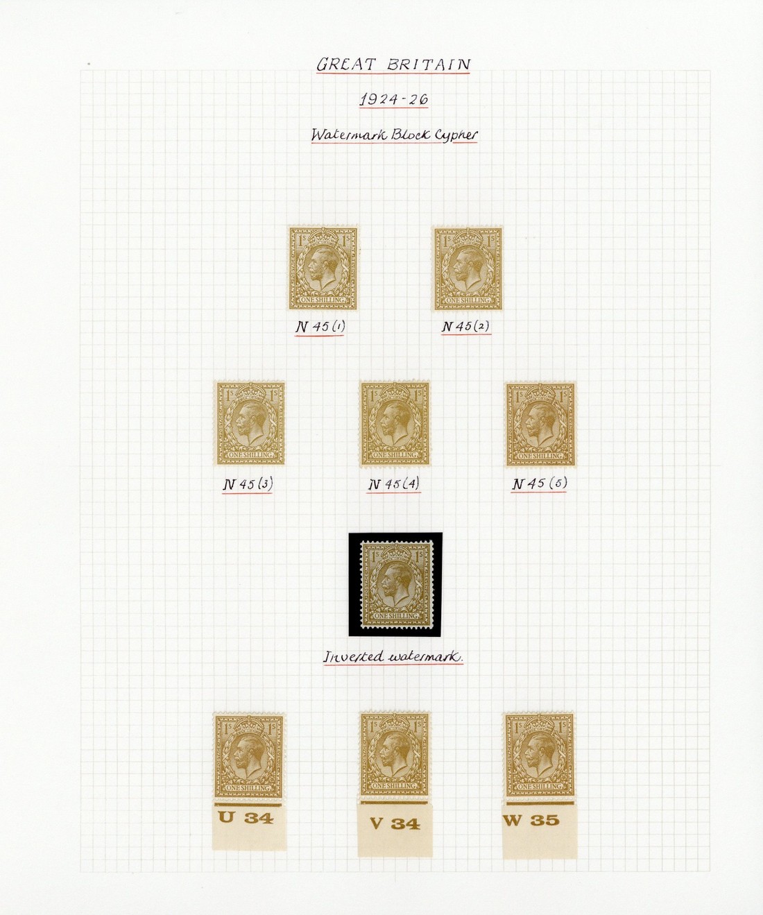 A specialised collection on leaves, apparently with all shades, sideways watermark set to 2d. and inverted watermark to 9d. and 1/- and a few additional multiples; generally lightly mounted or unmounted. A very good lot