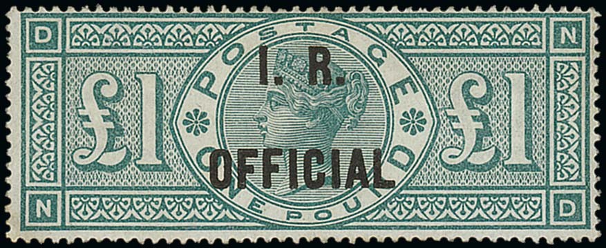 — £1 green, ND, part original gum; some gum redistribution which has been used to cover a small thin patch. B.P.A. Certificate, pink (2007). S.G. O16, £12,250. Photo