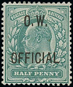1902-03 ½d. blue-green, large part original gum. B.P.A. Certificate (1985). S.G. O36, £575. Photo