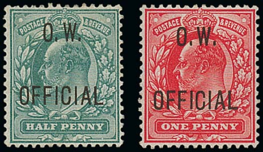 — ½d. blue-green and 1d. scarlet, large part original gum; 1d. is especially fresh. 1d. B.P.A. Certificate (1986). S.G. O36-37, £1150. Photo