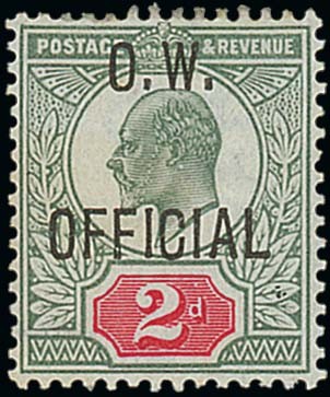 — 2d. yellowish green and carmine-red, large part original gum; part hinge remainder, a few ink speckles at lower right and light horizontal crease at top. B.P.A. Certificate (2007). S.G. O38, £2000. Photo