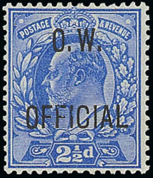 — 2½d. ultramarine, showing breaks in the letters "F I", large part original gum; a very fresh and appealing example of this stamp. B.P.A. Certificate (1985). S.G. O39, £3400. Photo