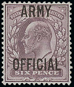1902-03 6d. pale dull purple with the wide, "forme 4" overprint, large part original gum. A. fresh and attractive example of this scarce later printing. B.P.A. Certificate (2012). S.G. O52, £3000. Photo