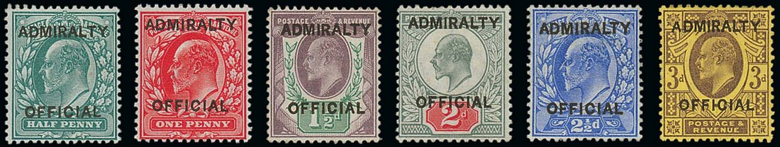 1903 ½d. to 3d. set of six, part to large part original gum; 1½d. with some gum redistribution. A good set. 2d., 2½d. and 3d. B.P.A. Certificates (1985). S.G. O101-106, £1625+. Photo