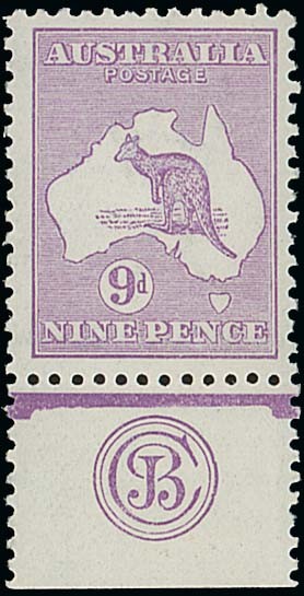 9d. violet, Plate 1, Die II, a "JBC" monogram single, fairly well-centred, fresh and fine mint. S.G. 39; BW 26(2)zc, $3000. Photo