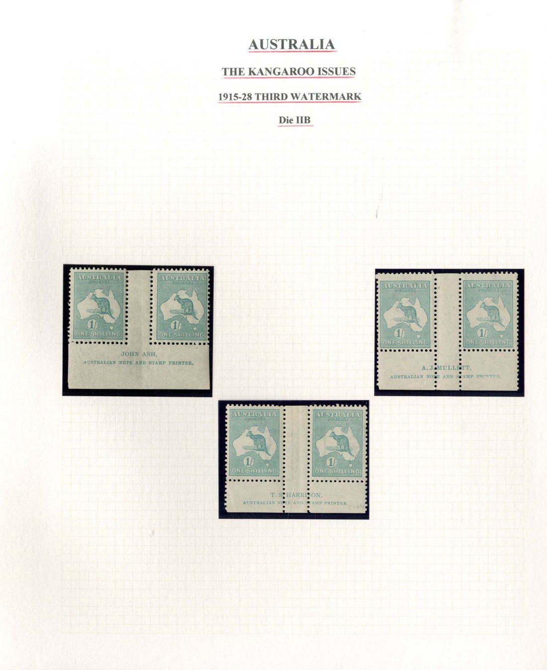 1/- blue-green, Die IIB, the imprint pairs comprising Harrison without stop, Mullett and Ash ("n" over "a"), fine mint. S.G. 40b; BW 33, $1500