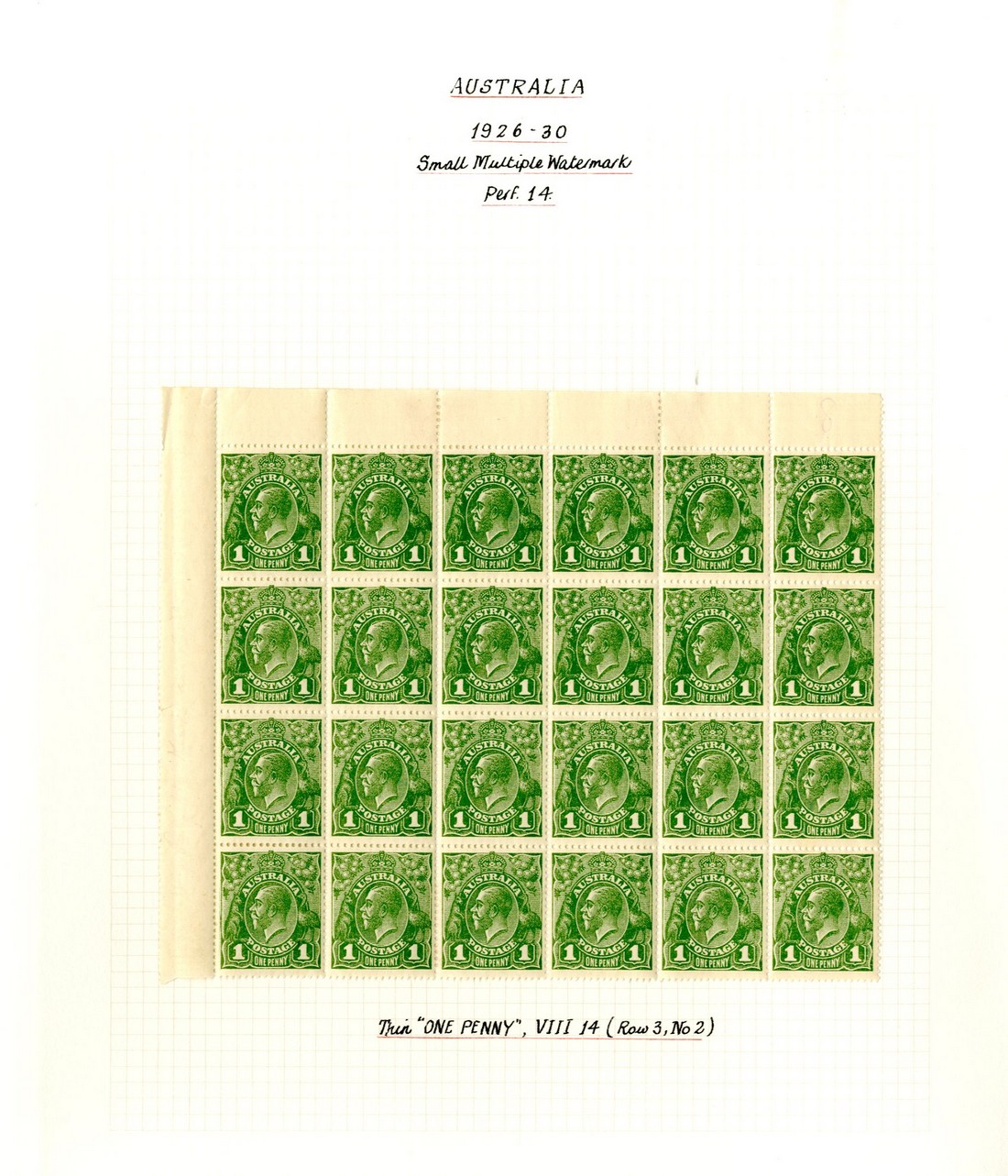 1d. green (shades), a mint range neatly mounted and written-up, comprising blocks of twenty-four, ten, eight (2, both with imprint) and four (8, one with watermark inverted and four with imprint), imprint strip of four, pairs (6, two with imprint and one a coil par with join and watermark inverted) and singles (9), many with plate flaws. A fine lot. S.G. 86; BW 80
