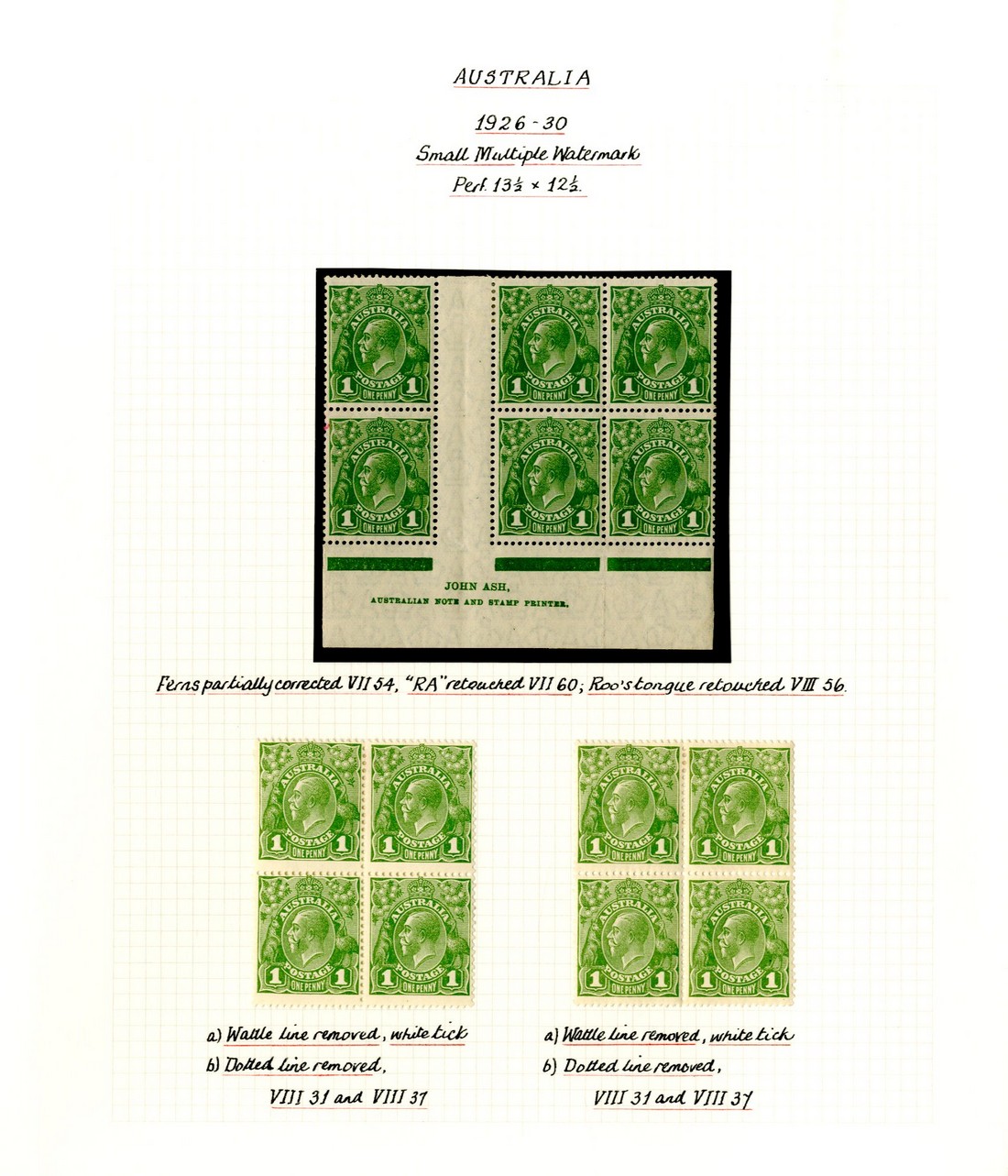 1d. green (shades) mint range all neatly mounted and written-up, comprising Die I blocks of six (imprint) and four (7, three with imprint), pairs (2, one vertical with watermark inverted) and singles (8), Die II marginal block of four and a pair, and Dies I and II se-tenant pairs (4), a number with plate flaws identified, fine. S.G. 95; BW 81