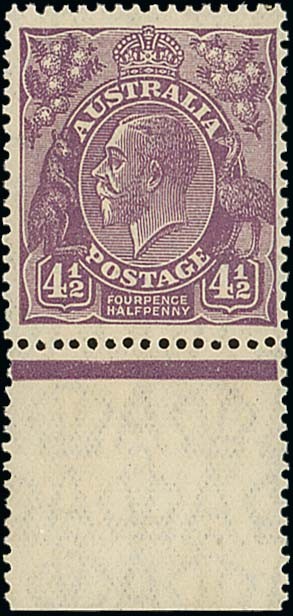 4½d. violet, Die II, sheet margin at foot, a little gum toned as usual otherwise fine unmounted mint. Very rare. R.S.P.V. (2010) and B.P.A. (2012) Certificates. S.G. 103var; BW 121, $12,500. Photo