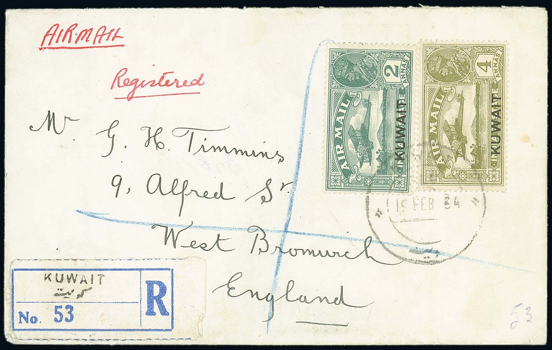 1934 (19 Feb.) envelope (vertical fold at centre) registered to England, bearing 1933 Air 2a. and 4a. sharing light C38a c.d.s. and with handstamped registration label at foot. Photo