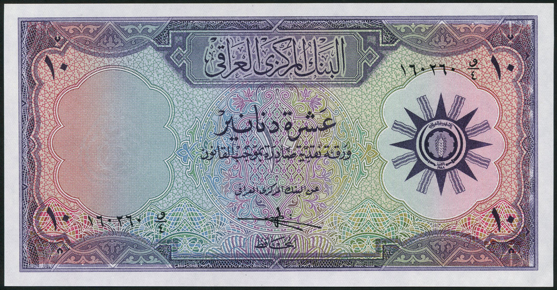 (x) Central Bank of Iraq, a full set from the 1958 issue, comprising 1/4, 1/2, 1, 5 and 10 dinars, all with coat of arms at right