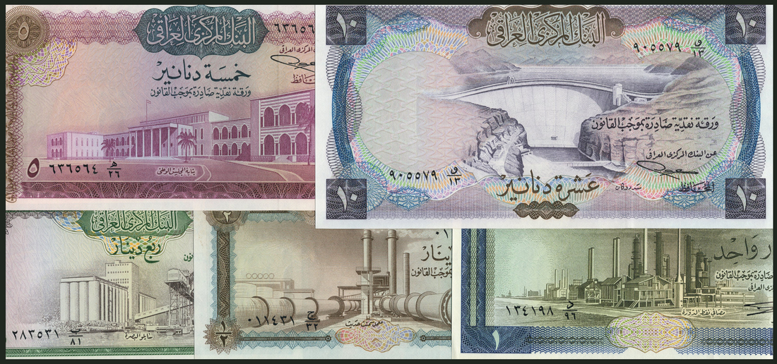 (x) Central Bank of Iraq, a full set from the 1971 issue comprising 1/4, 1/2, 1, 5 and 10 dinars