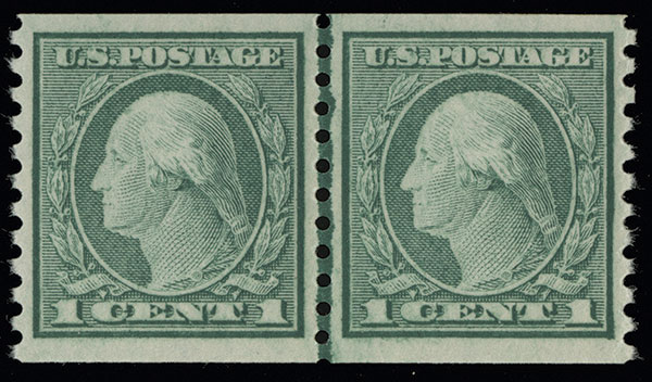 #452, 1c Green rotary coil, perf. 10 vert., select joint line pair, exceptionally well centered, strong color, immaculate o.g., never hinged, extremely fine; 1988 PF certificate.
