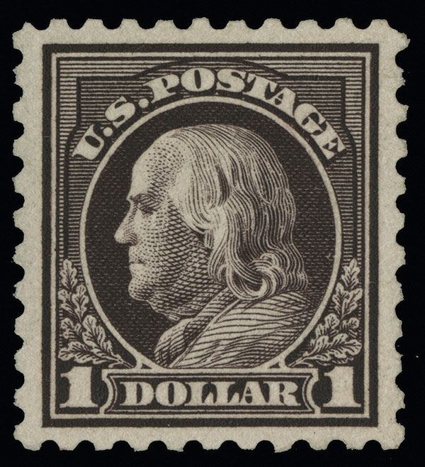#478, $1.00 Violet black, wonderfully well centered within large margins, strong rich color and a highly detailed impression, o.g., very lightly hinged, extremely fine; 1989 PSE certificate and 1997 PF certificate stating never hinged.