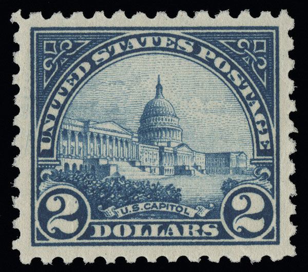 #572, $2.00 Deep blue, beautifully centered, exceptionally bright and fresh, o.g., n.h., extremely fine; 2013 PSE certificate (XF-Superb 95; SMQ $325.00).