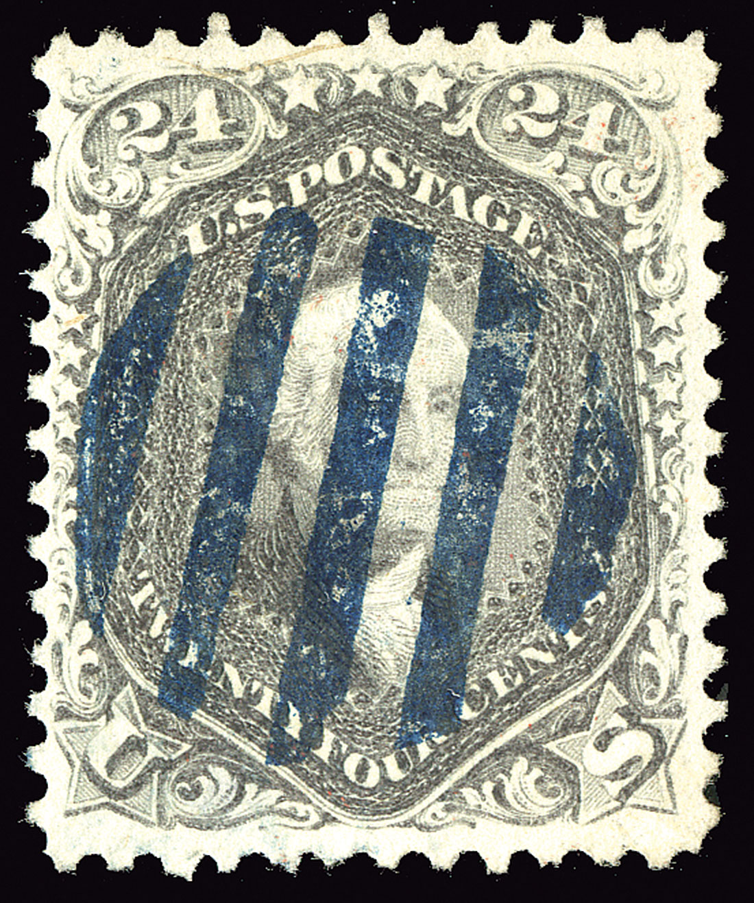 #78, 24c Lilac, extraordinarily well centered used single, exceptionally deep color and impression, plus exquisite central bold blue five bar rimless grid cancel, extremely fine and visually striking; 1987 PF certificate.