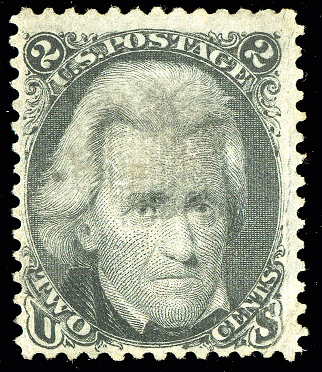 #84, 2c Black, "D" grill, used with light cancel, better centered than most examples of this scarce grill as perfs. clear the design all around, small corner creases at bottom right which very slightly break the paper, fine appearance and very scarce.
