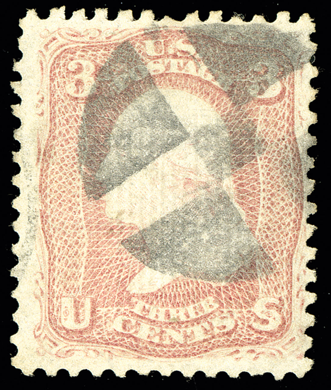 #85, 3c Rose, "D" grill, used single, fresh color, strong and well defined grill, cancelled by a neat segmented circular cancel, normal fine centering and scarce.
