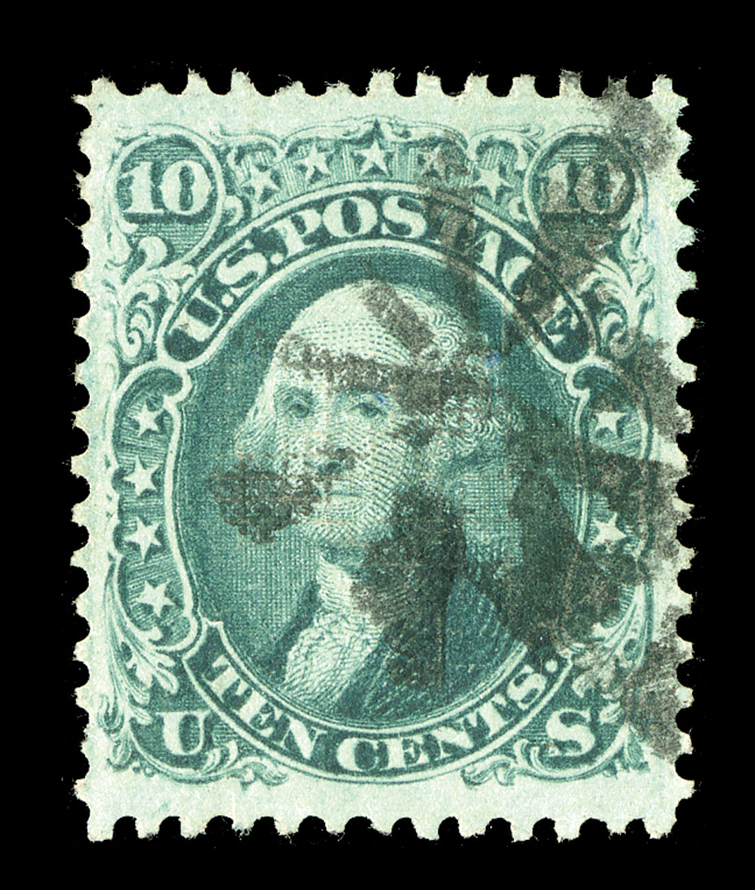 #89, 10c Green, "E" grill, an impressively centered and margined used example, with huge balanced margins all around, fresh rich color, attractive cork cancel, extremely fine and most desirable; 2012 PF certificate.