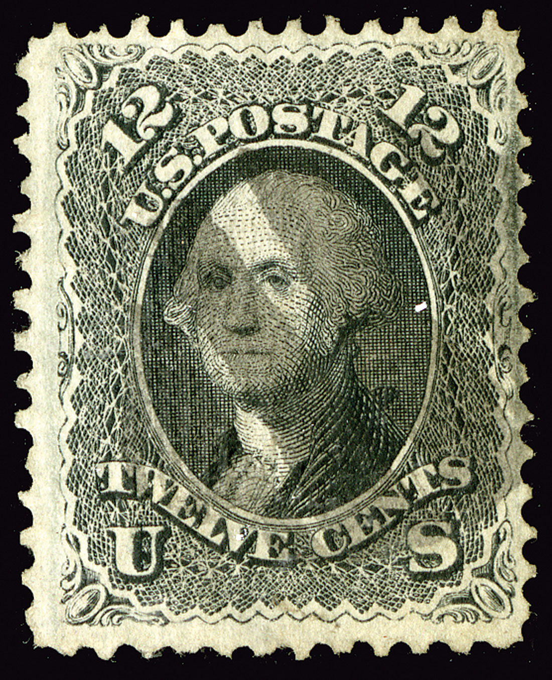 #97, 12c Black, "F" grill, used single, quite well centered, strong rich color and impression on bright paper, unobtrusive cork cancel, nearly very fine.