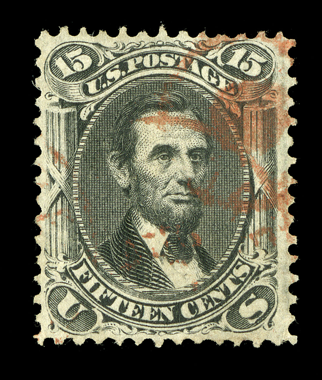#98, 15c Black, "F" grill, used, quite well centered and margined, strong color and impression, accented by red Baltimore "foreign mail" cancel, very fine; 2014 PF certificate.