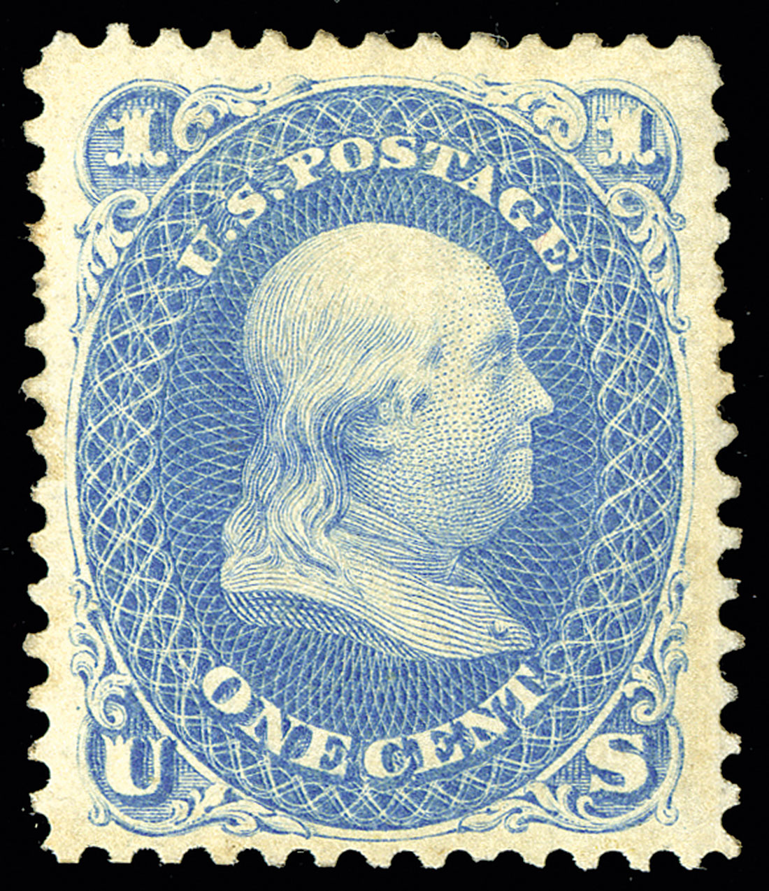#102, 1c Blue re-issue, well centered within large margins, bright color, o.g., trace of perf. toning, otherwise very fine; 1995 PF certificate.