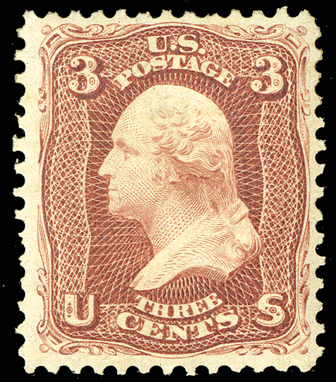 #104, 3c Brown red re-issue, deep luxuriant color and a razor-sharp impression, nicely centered and margined, o.g., tiny trivial corner perf. crease, otherwise nearly very fine; a rather attractive example of this rare re-issue; only 465 sold; clear 2002 PF certificate.