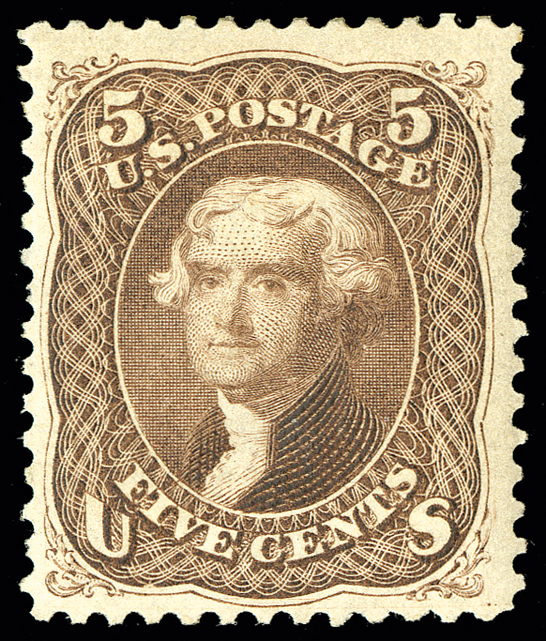 #105, 5c Brown re-issue, rather well centered amid wide margins, rich luxuriant color and a detailed impression, o.g., nearly very fine; only 672 were issued of this value; 2002 PF certificate.