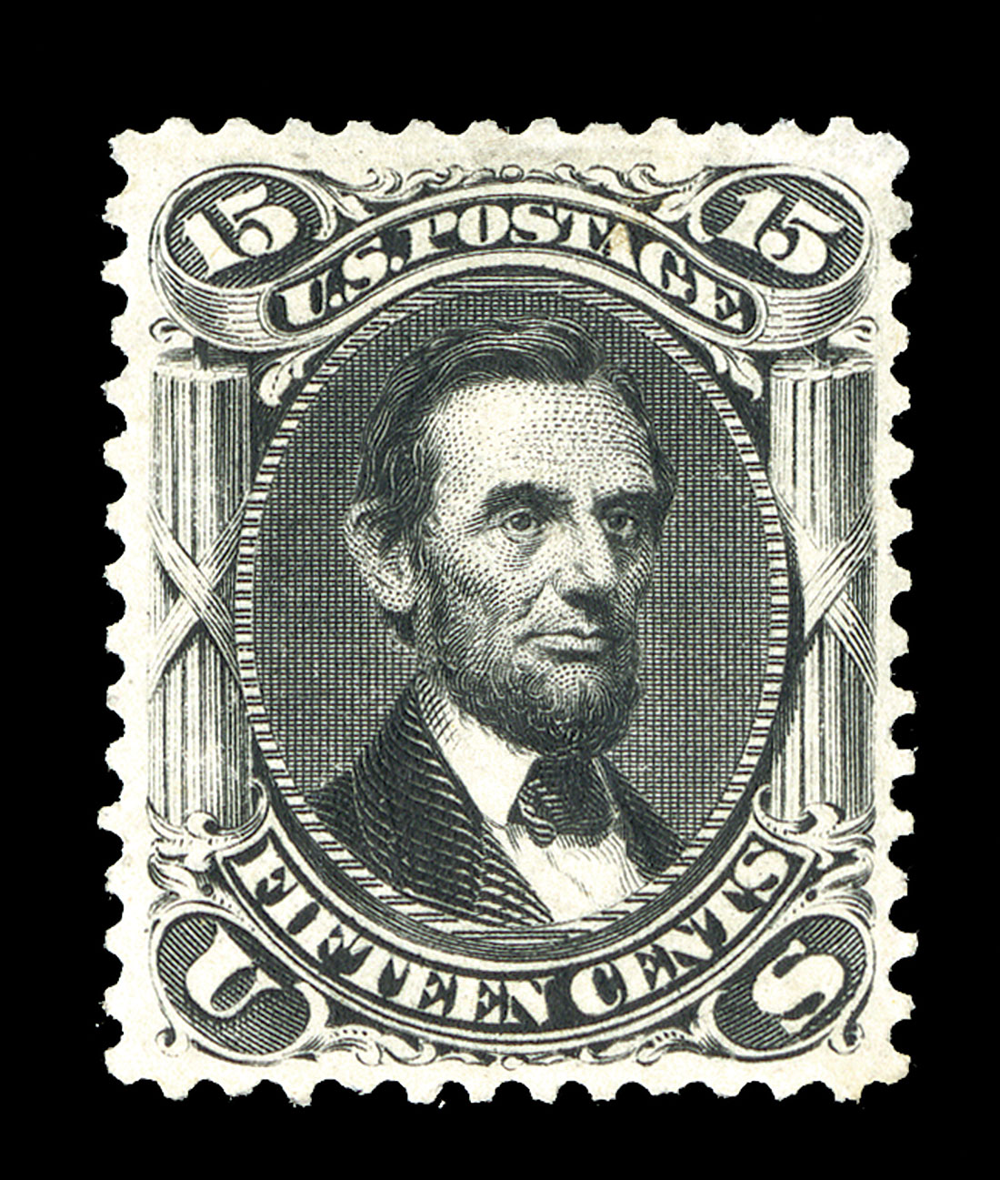 #108, 15c Black re-issue, fresh and crisp mint example of this scarce value, truly prooflike color and impression on bright paper, well centered, particularly when compared to the vast majority of known copies, full o.g., relatively lightly hinged, very fine; only 397 were issued and a surprisingly small number of surviving examples still retain their original gum; 2012 PF certificate.
