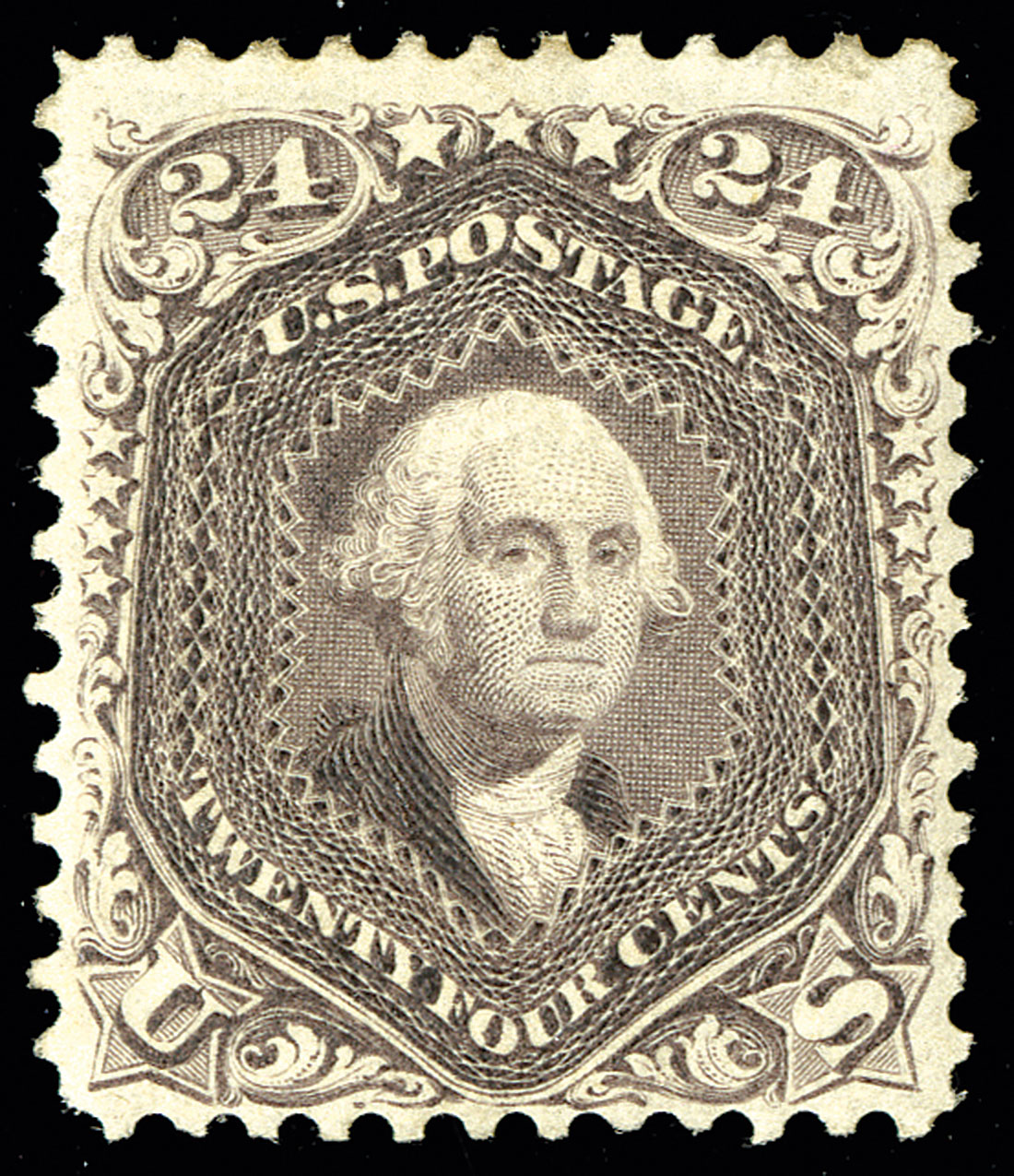 #109, 24c Deep violet re-issue, strong rich re-issue color and impression on bright white paper, attractive centering, full o.g., lightly hinged., nearly very fine; a rare stamp with only 346 sold; 2003 PF certificate.