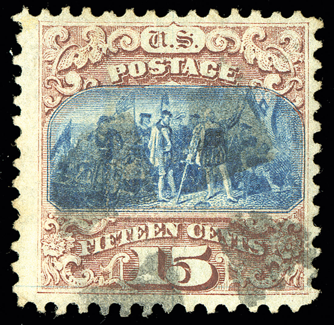 #118, 15c Brown and blue, Ty. I, used single with quartered cork cancel, quite well centered, fresh colors, very fine.