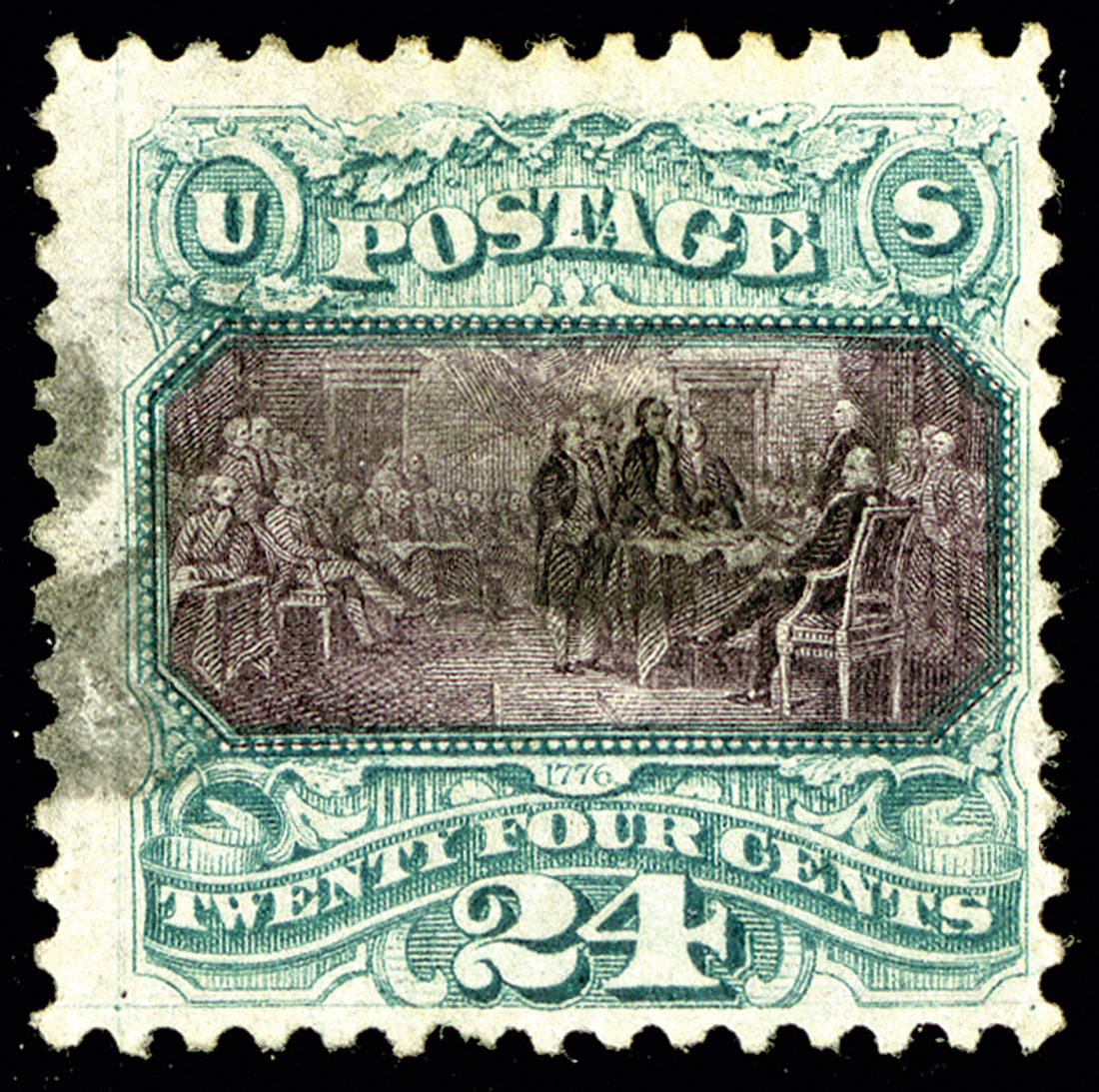 #130, 24c Green and violet re-issue, used with light cork cancel at left, vivid rich colors on fresh white paper, two trivial corner perf. creases, attractive fine used example; 2014 PF certificate.