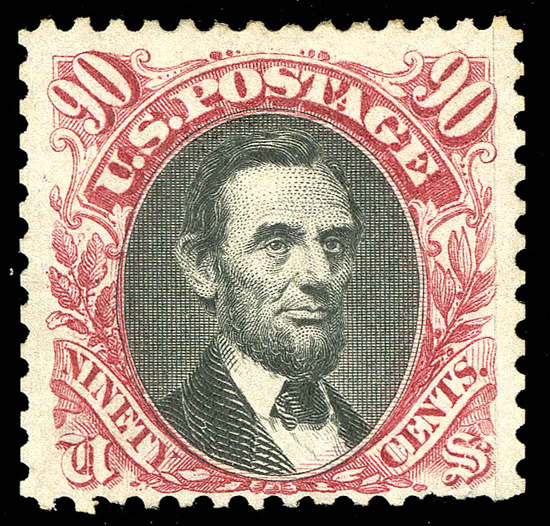 #132, 90c Carmine and black re-issue, unused, deep intense colors and impression, short perfs at bottom right, fine centering.