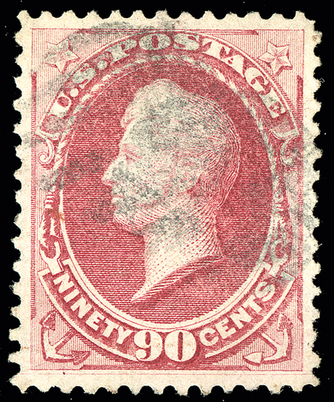 #155, 90c Carmine, attractive used single, well centered within uncommonly large margins, bright color, light cancel, choice very fine.